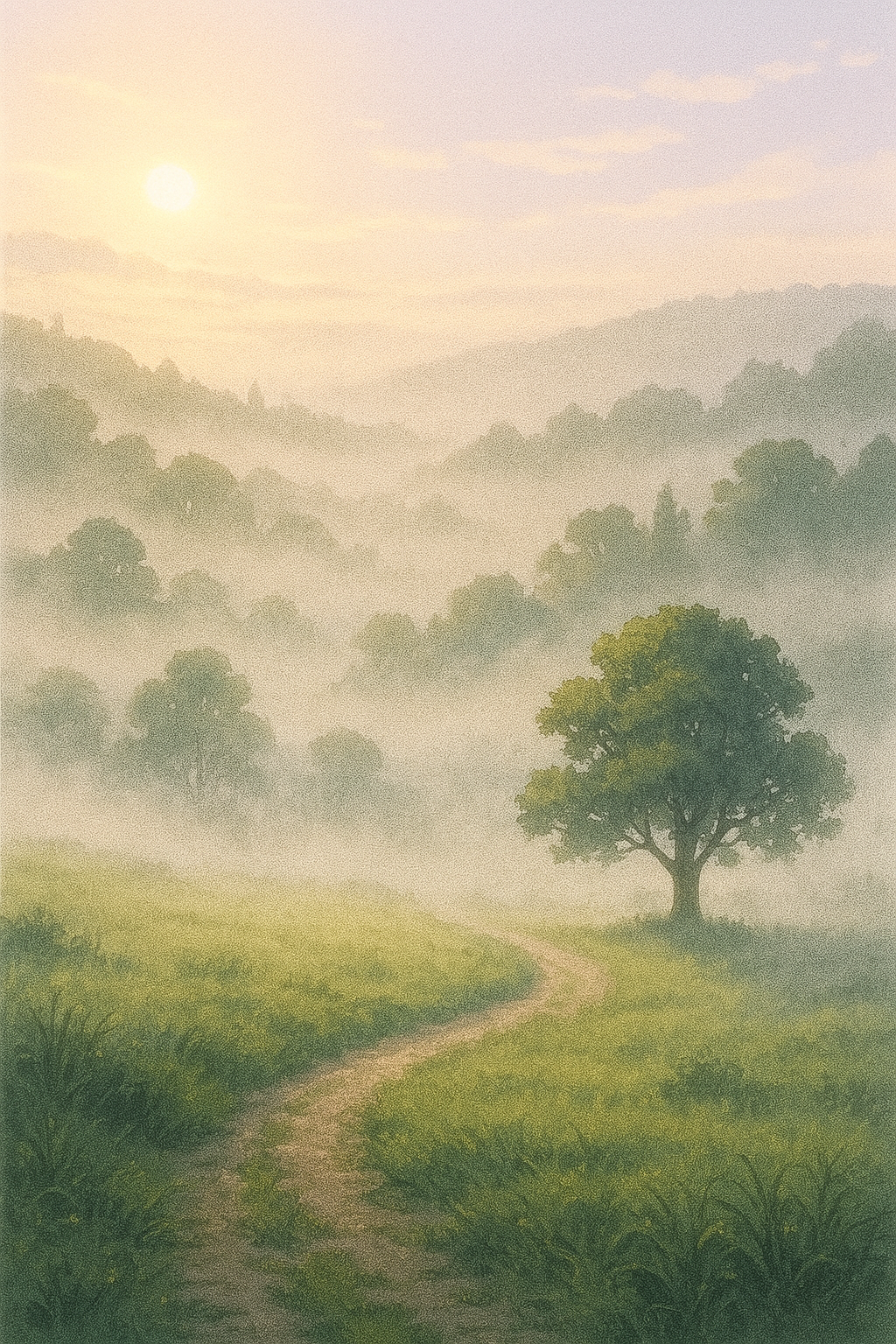 朝霧は、音を吸い込む。鳥の声も、風のささやきも、どこか遠くから届くように聞こえる。