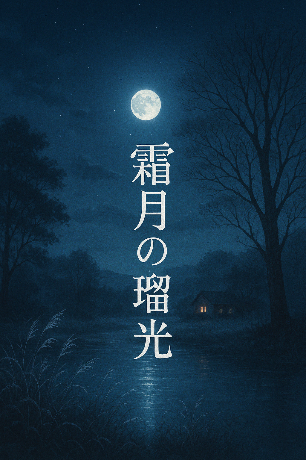 静寂のなか、遠くの小さな家の灯りが月光に溶け込む瞬間。