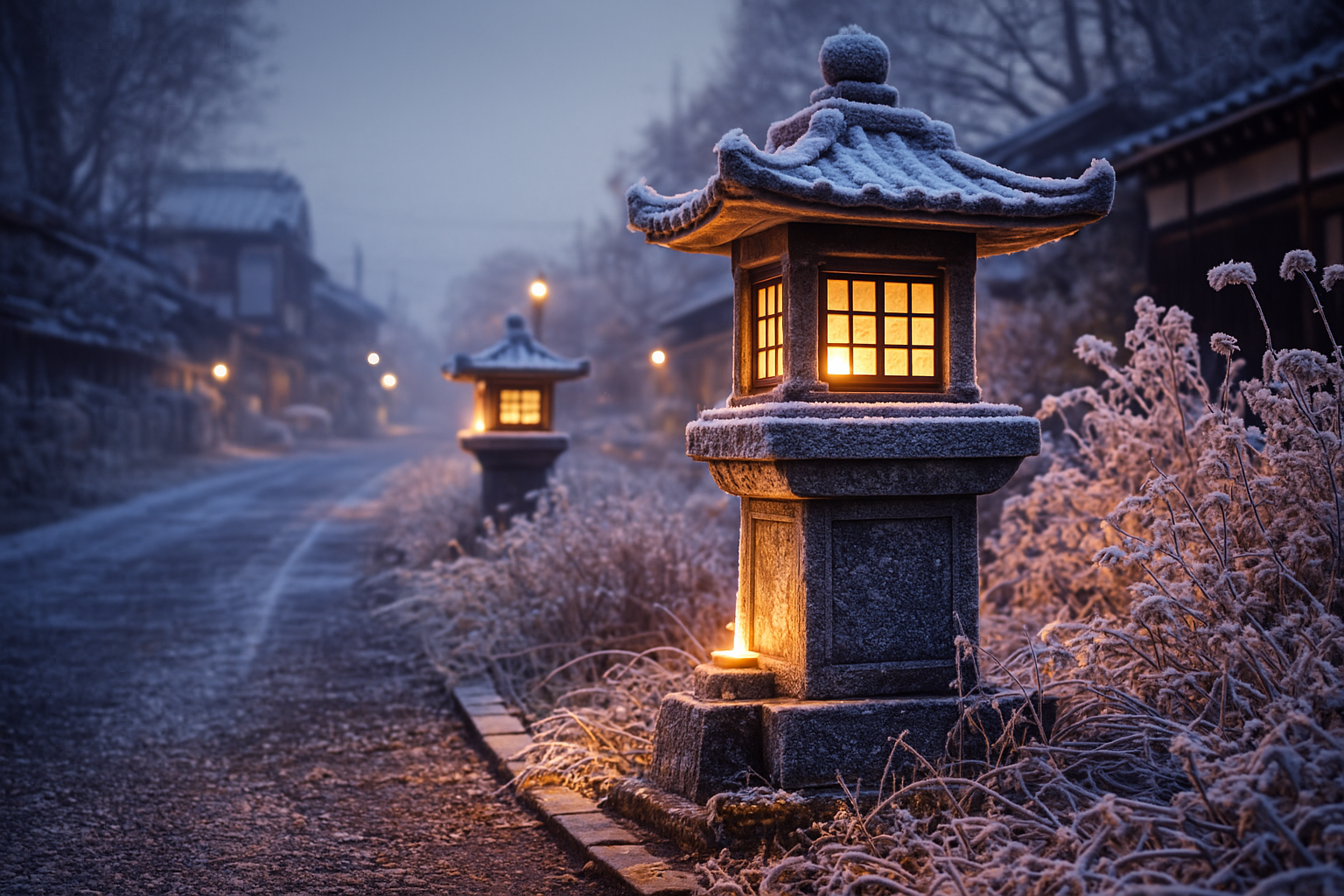 12月に入り、空気の冷たさがぐっと深まってくると、街の景色は一段と冬の装いを帯び始めます。そんな師走の早朝、霜が白くきらめく小径の片隅で、そっと灯る光に心を奪われる瞬間があります。この静かな光景こそ、本日の言葉「師走の霜灯(しわすのしもび)」が映し出す世界です。
