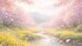 このような 春の光と色が溶け合う瞬間 を表した言葉が「春霞彩光」です。