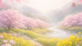 春霞と花の影が織りなす情景