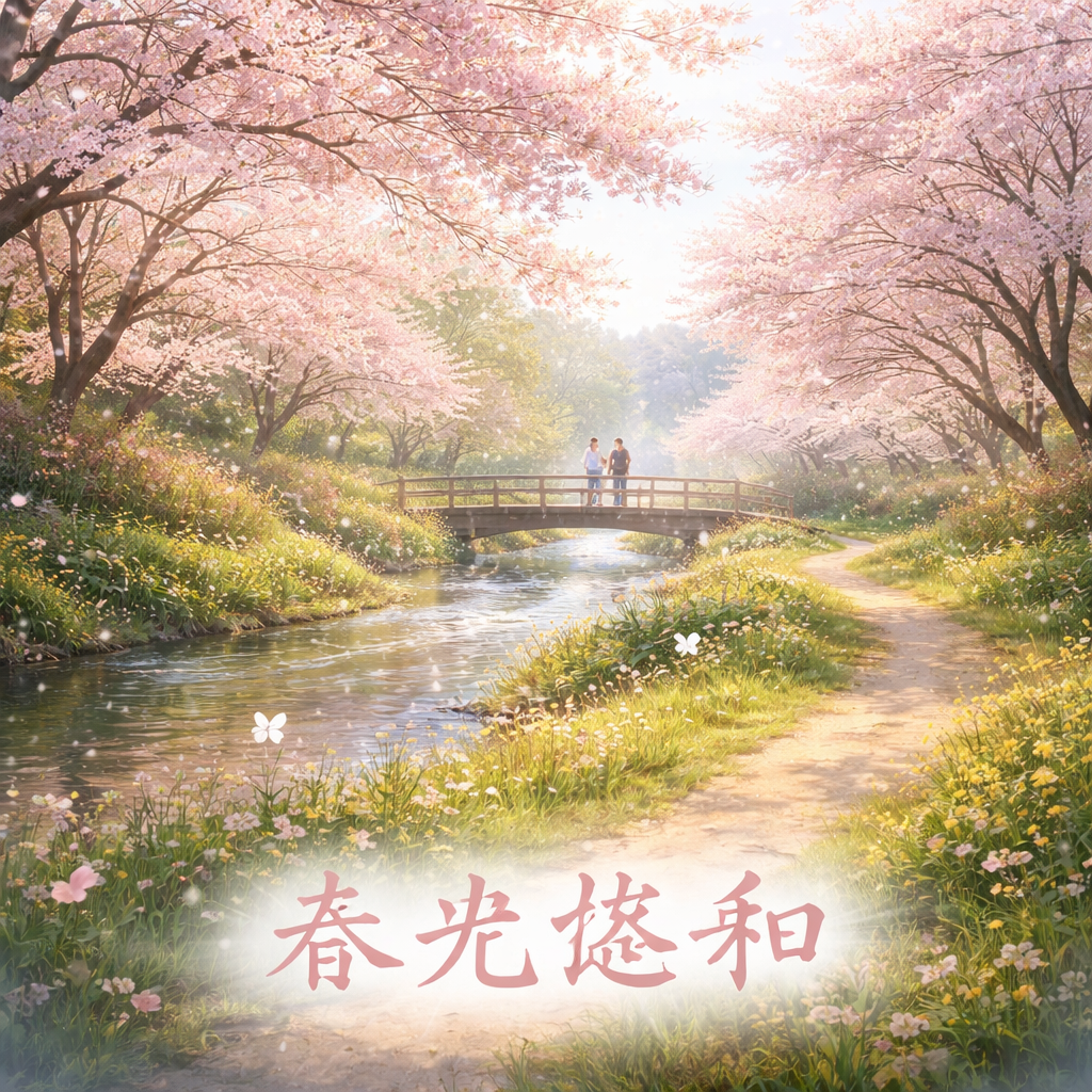「春光」は、やさしく降り注ぐ春の光。「悠和」は、ゆったりと穏やかに調和している様子を意味します。この二つが重なり合うことで、自然と心がほぐれていくような情景が浮かび上がります。