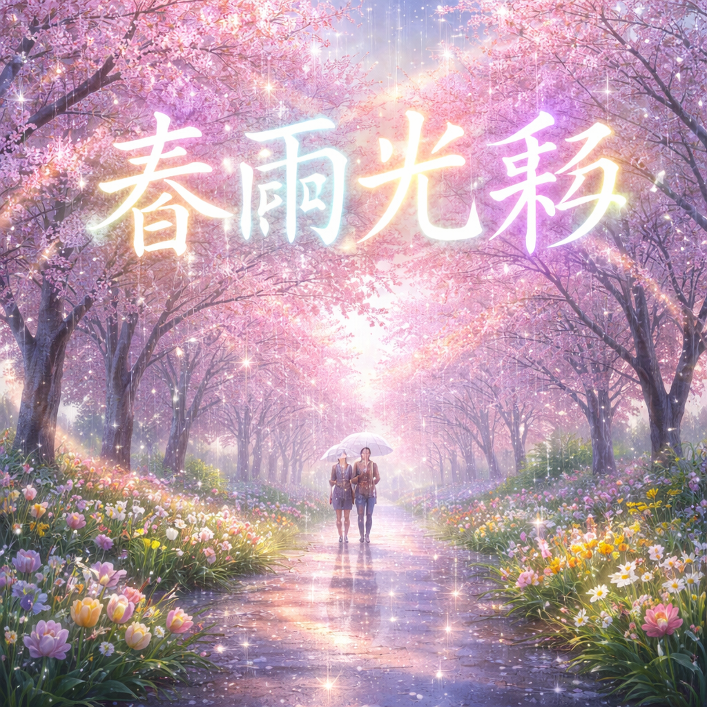 春雨光彩(しゅんうこうさい)――やわらかな春の雨に包まれた世界が、ほのかな光をまといながら静かに輝く情景を表す言葉です。