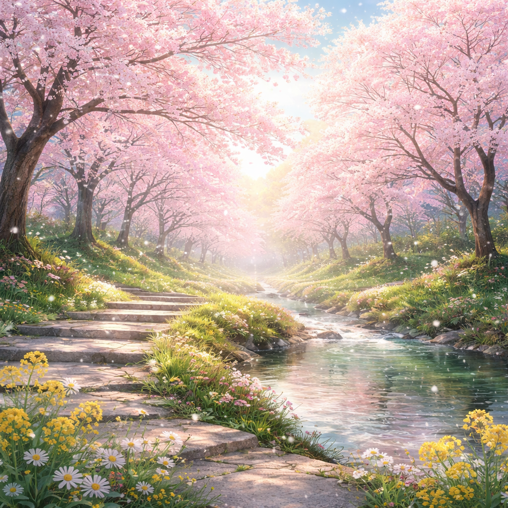たとえば、朝のまだ人の少ない小道。桜の花びらが静かに舞い落ち、小川のせせらぎだけが響く時間。あるいは、午後のやわらかな陽射しの中で、草花が風にそっと揺れるひととき。そこには賑やかさとは違う、落ち着いた春の表情があります。